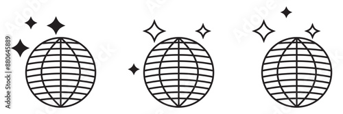Disco ball vector icons set. Disco ball shining stars symbol. Disco light graphic design template logoPrint