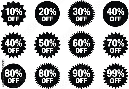 Discount percentage label icons set. sale, promo, offer badge vector illustration