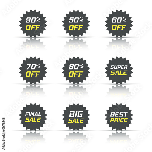 Discount stickers vector icon in flat style. Sale tag sign illustration on white isolated background. Promotion 50, 60, 70, 80, 90 percent discount concept.