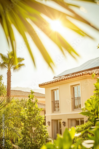 Discover a Serene Oasis: A Beautifully Designed Home Adorned with Tropical Plants and Sustainable Features Bathed in Glorious Sunlight.