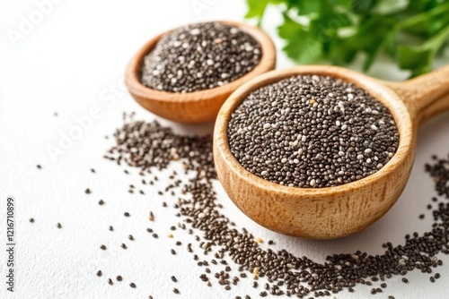 Discover the culinary potential of organic chia seeds displayed in wooden bowls on a clean white background