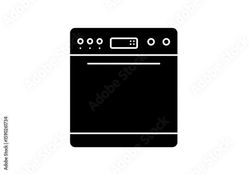 Dishwasher Icon – Minimalist Black and White Vector for Kitchen Appliance Interfaces