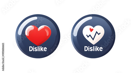 Dislike Buttons with Heart Icons Social Media Reactions User Feedback Symbols Interactive De