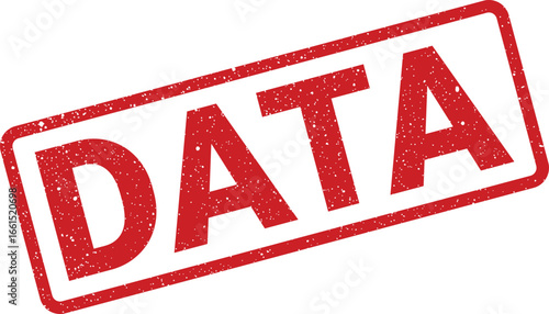 Distressed red rubber stamp with DATA in bold, rectangular shape, textured effect