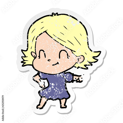 distressed sticker of a cartoon friendly girl
