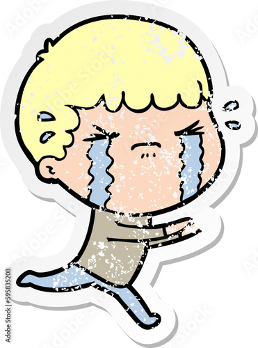 distressed sticker of a cartoon man crying
