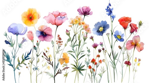 Diverse Blooming Wildflowers in Lush Natural Garden Setting
