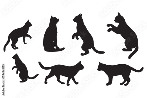 Diverse cat silhouettes in various poses ideal for pet themed designs and animal graphics