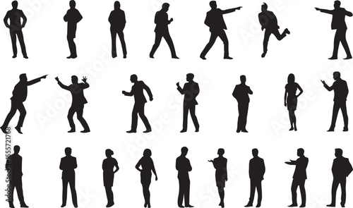 Diverse collection of business people silhouettes in various poses and actions isolated