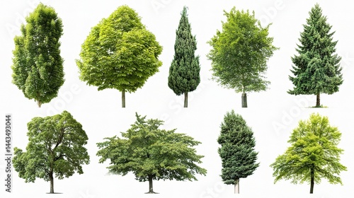 Diverse Collection of Green Trees with Varying Shapes and Sizes