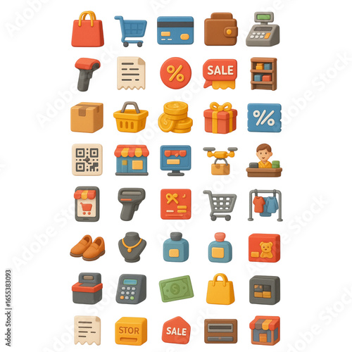 Diverse collection of retail and shopping icons representing various consumer goods and services for online stores