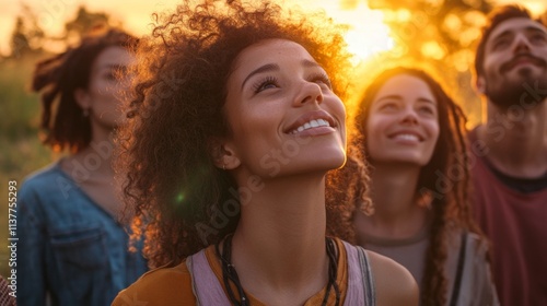 Diverse Group of Friends Enjoying a Sunset Together Outdoors