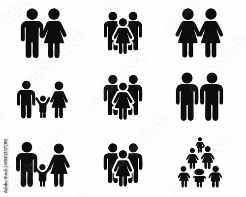 Diverse groups of people represented as simple black silhouette icons