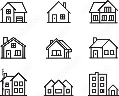 Diverse Home Architecture A Collection of House Illustrations Showcasing Varied Styles and Designs for Real Estate and Housing Concepts