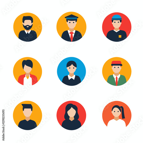 Diverse People Avatars: Flat Vector Icon Set of Professional Characters