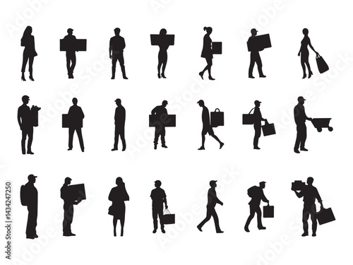 Diverse People Working in Logistics and Delivery - Silhouette Collection