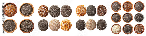 Diverse selection of healthy nutritious seeds grains legumes and nuts presented in a visually appealing arrangement of bowls