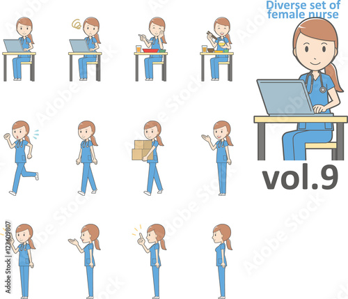 Diverse set of female nurse , EPS10 vector format vol.9