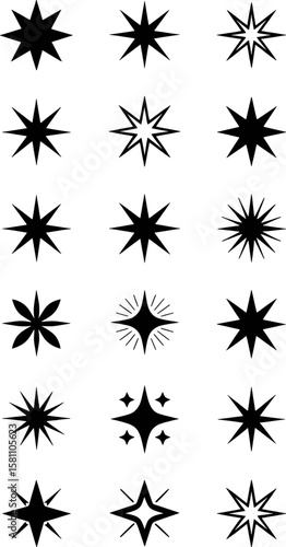 Diverse starburst shapes and sparkle icons vector