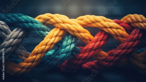 Diverse strengths connect in teamwork, symbolized by a team rope. Ai Generated