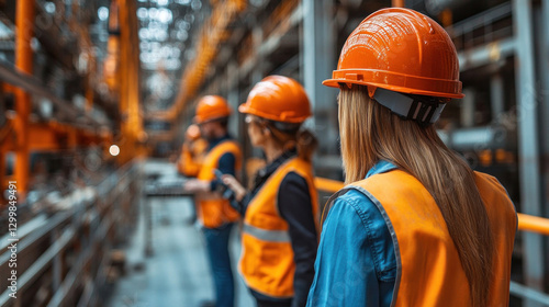 Diverse team of engineers on-site, examining bridge construction, using surveying equipment, analyzing real-time project metrics