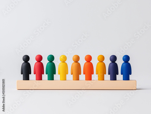 Diverse Wooden Figurines Representing Unity and Teamwork