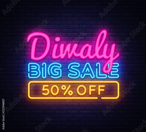 Diwali Festival Offer Big Sale neon text vector design template. Diwali Hindu Sale neon logo, light banner design element colorful modern design trend, night bright advertising, bright sign. Vector