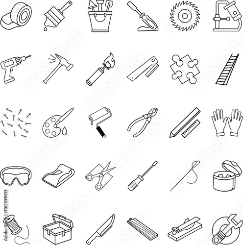 DIY Home Repair Tools Icons Construction, Renovation, and Crafts