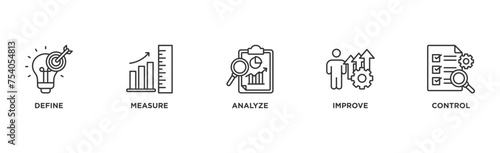 Dmaic banner web icon illustration concept of define measure analyze improve control with icon of management, performance, development, target