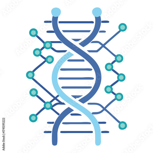 DNA Strand in Digital Age: A digitally rendered depiction of a DNA strand intertwined with a network of circuits, symbolizing the intersection of biology and technology.