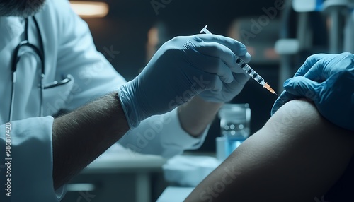Doctor Administering Injection to Patient in a Clinical Setting
