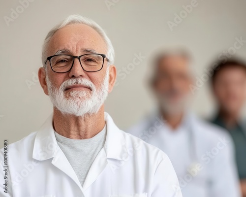 Doctor explaining prostate health to a diverse group of elderly men, bright room, Prostate cancer group education, Public health initiative