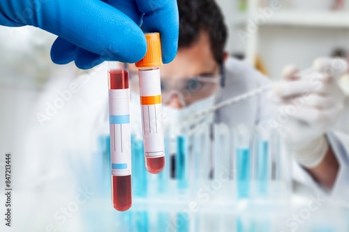 Doctor holding blood sample in test tube
