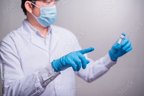Doctor holding covid vaccine and touch in the air, Medicine and healthcare concept.