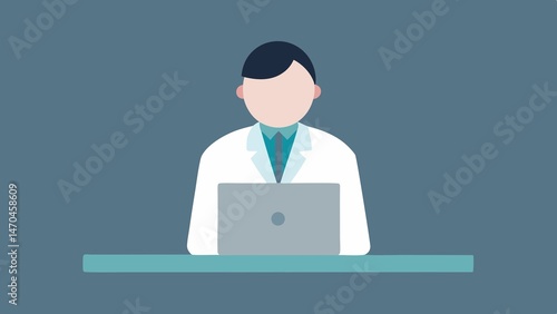 Doctor Using Laptop In Office Healthcare Technology Illustration Design