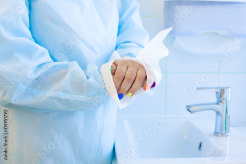 Doctor washes his hands before the procedure