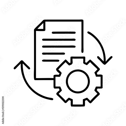 Document and gear symbolizing a plan moving towards success in a minimalist style on a white background