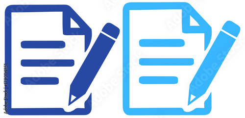 Document and Pencil Writing Icons - Content Creation & Editing Symbols in Blue