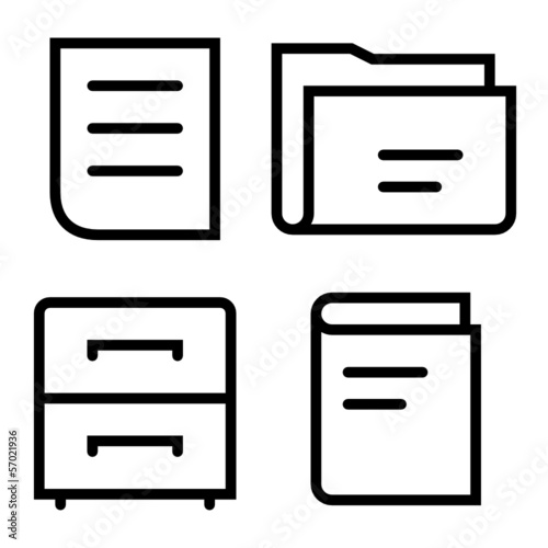 Document, folder, cabinet and book thin icons