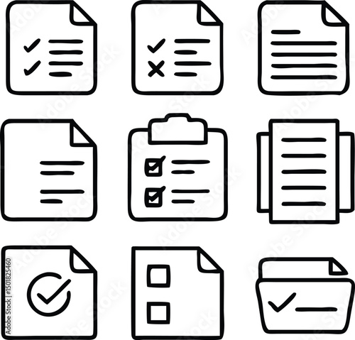 Document Icons Set: This image is a simple, but effective icon set, suitable for any project that requires clean line drawings of important documents and paperwork elements.