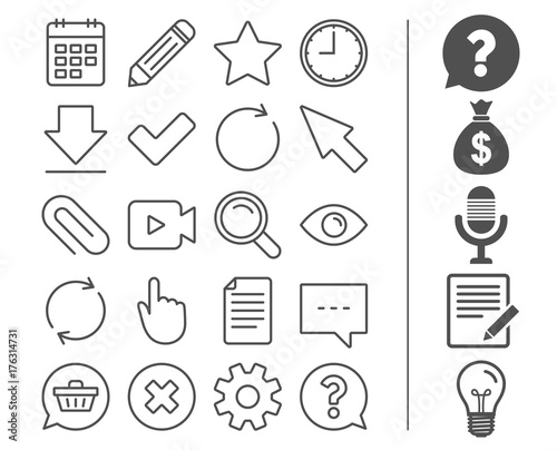 Document, Time and Calendar line icons. Question.