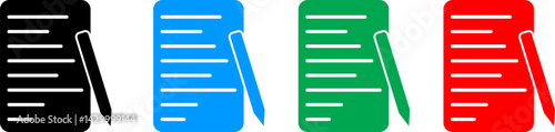 Document with pen, form icon. Sheet of paper and pencil outline and filled vector sign. linear and full pictogram. Symbol, logo illustration. Different style icons set. Vector illustration.