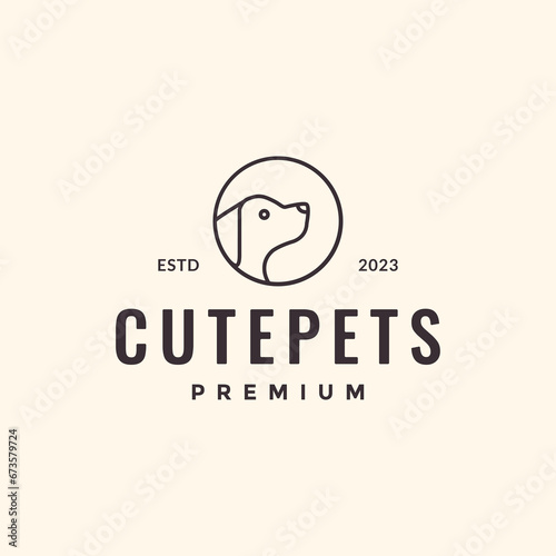 dog puppy canine head side view circle rounded minimal simple line style hipster logo design vector icon illustration