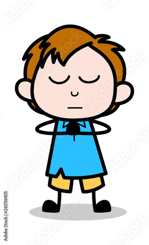 Doing Prayer - School Boy Cartoon Character Vector Illustration
