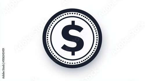 Dollar coin icon encased in a circular black frame on a white background
