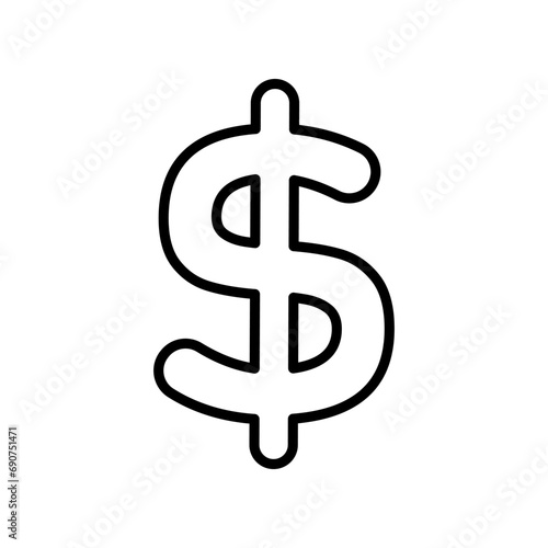 Dollar icon. Coloring book Black and white vector illustration.