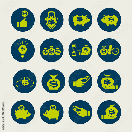 dollar sign, coin, money, set