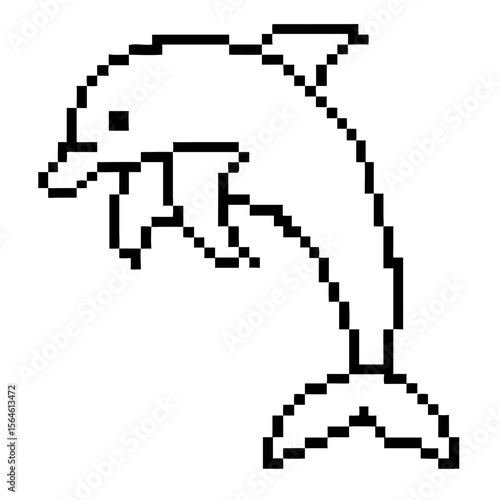 Dolphin swimming in black pixel outline, showcasing playful behavior