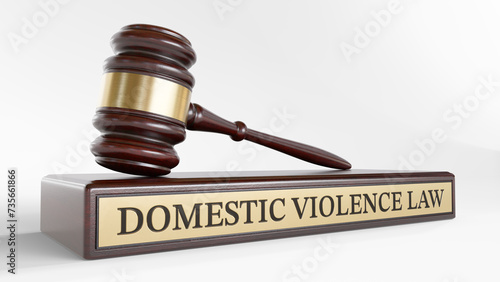 Domestic violence law: Judge's Gavel as a symbol of legal system and wooden stand with text word