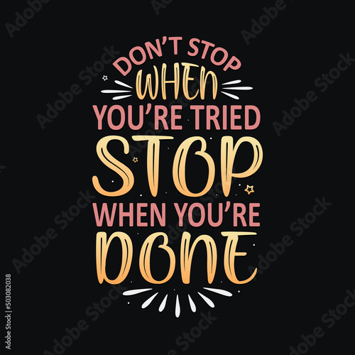 Don't stop when you're tried stop when you're done motivational saying typography T-shirt design